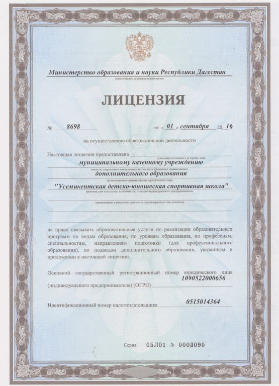 | Полное наименование образовательной организации* | Муниципальное бюджетное учреждение дополнительного образования "Усемикентская детско-юношеская спортивная школа" |