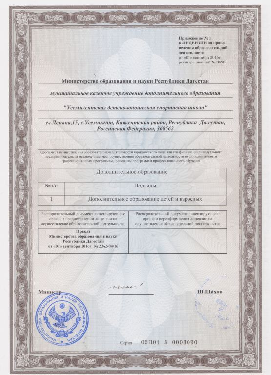 | Сокращенное наименование образовательной организации* | МБУ ДО "Усемикентская детско-юношеская спортивная школа" |
